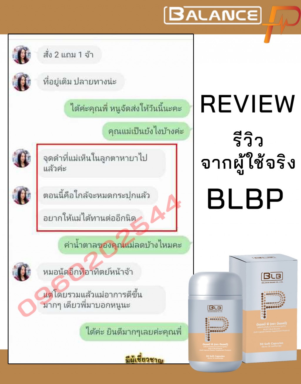 คุณสุกัลยา มีจุดดำๆในตา หางตามองเห็นเป็นหมอกๆ น้ำตาลสูง 200 mg/dl ได้ลองทาน BLP สุขภาพองค์รวมดีขึ้นตามลำดับ ไย่แมงมุมในตาหายแล้ว